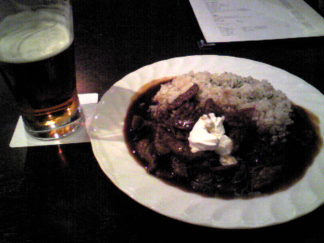 いつも通り赤ビール。と、ビーフストロガノフ。
