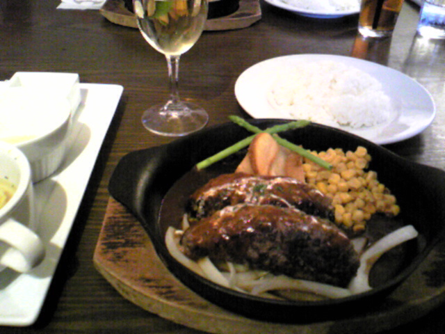 昼からハンバーグ+白ワイン なんて贅沢な!!