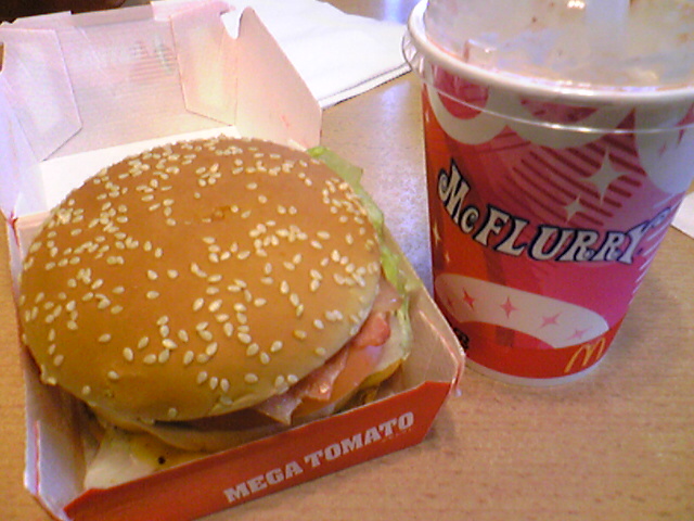 ↑知人が頼んだメガトマト&水方のマックフル~リ~(ストロベリーケーキ)