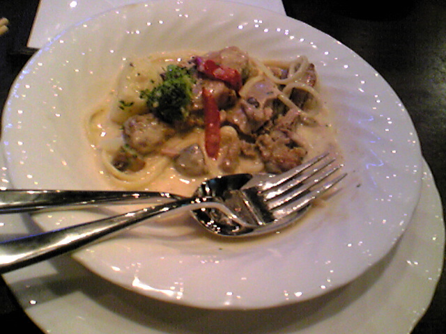 鶏肉クリームソース ↓ の合間に赤ビール。締めはバーボン!