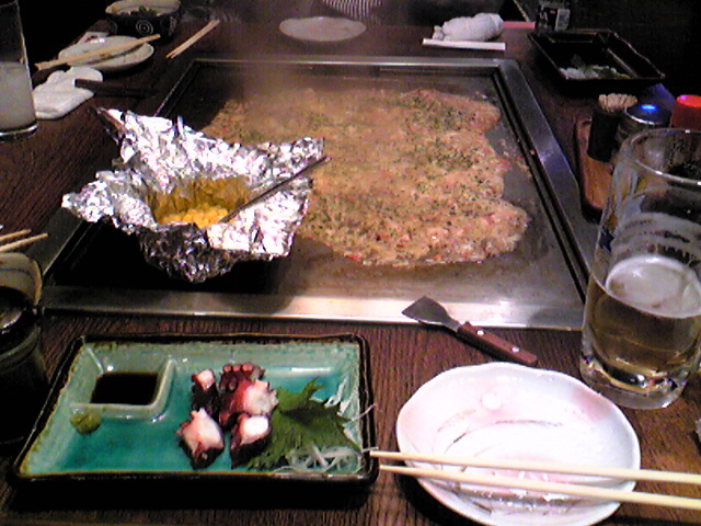 コーンバターとかタコとかビール。もんじゃ広ェな。