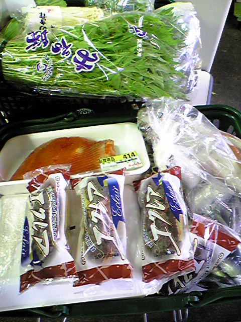 こんな細い人がイワシ1箱その他諸々を大量に籠に入れてると、いっそ爽快だな…。
